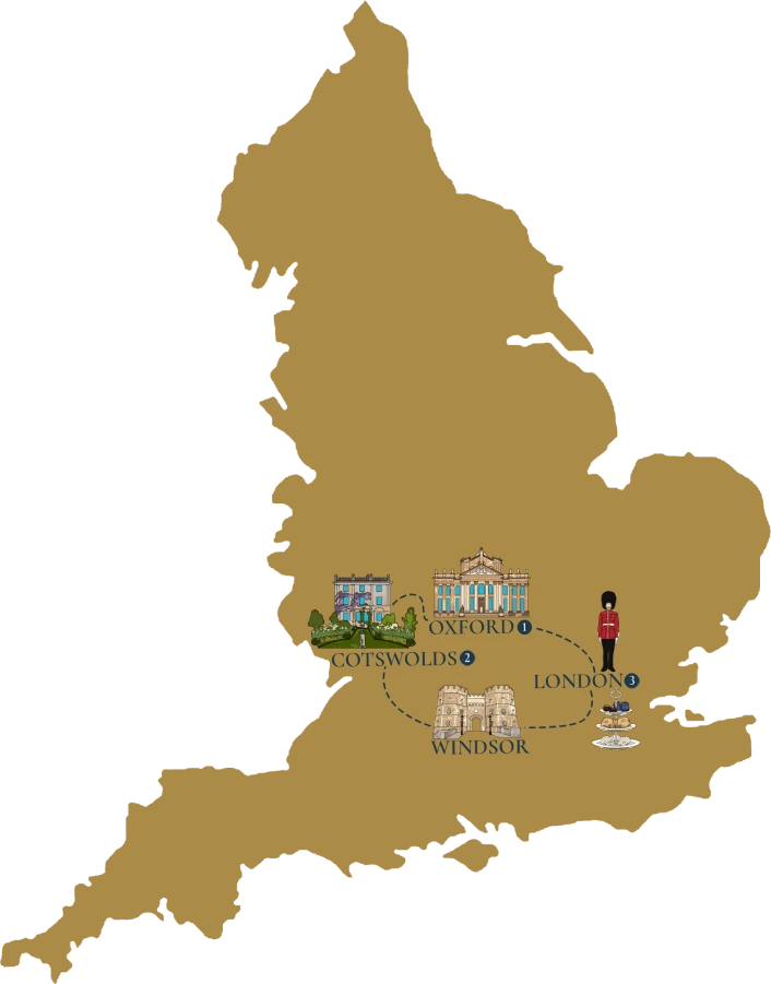 Embark on a captivating journey, “In the Footsteps of an English Aristocrat,” starting with your arrival in London, where you’ll relax before experiencing a spectacular West End show. Delight in a Royal Food Tour through Mayfair and St. James’s, sipping exclusive cocktails and dining at the most regal establishments. Join retired Royal Protection Officer David for a fascinating walking tour, rich with royal history and anecdotes. Explore the grandeur of Kensington Palace and the majestic Windsor Castle, followed by an inspiring visit to the organic beauty of Highgrove Gardens. Conclude your adventure at the magnificent Blenheim Palace, considered one of England’s greatest treasures, before bidding farewell to the enchanting landscapes and rich heritage of England.